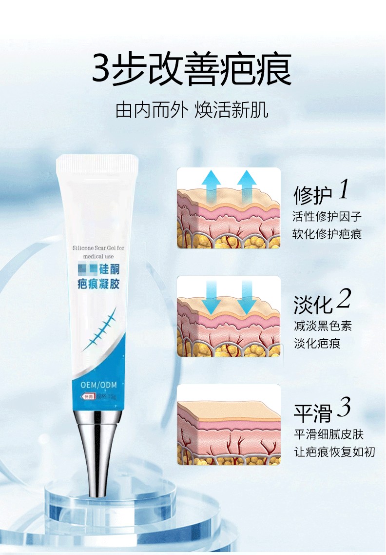 醫(yī)用硅酮疤痕凝膠OEM 疤痕膏除疤疤痕修復(fù)膏淡疤膏二類械字號(hào)貼牌
