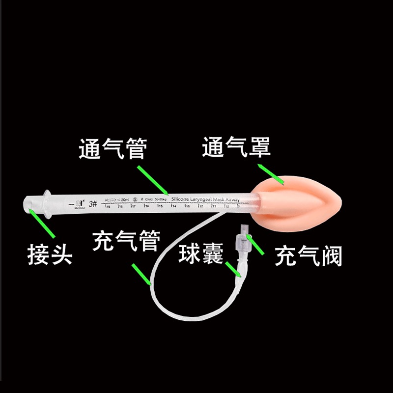 | 組成成分 | 普通型喉罩由氣囊、連接件、通氣管、充氣管、接頭、指示氣囊及充氣閥組成。加強(qiáng)型喉罩由氣囊、連接件、通氣管、充氣管、接頭、指示氣囊及充氣閥組成。食道引流型喉罩由食道引流管、氣囊、連接件、氣囊片、通氣管、充氣管、充氣管、接頭、指示氣囊及充氣閥組成。 |