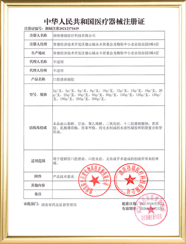 鄂食藥監(jiān)械生產(chǎn)許20120589號