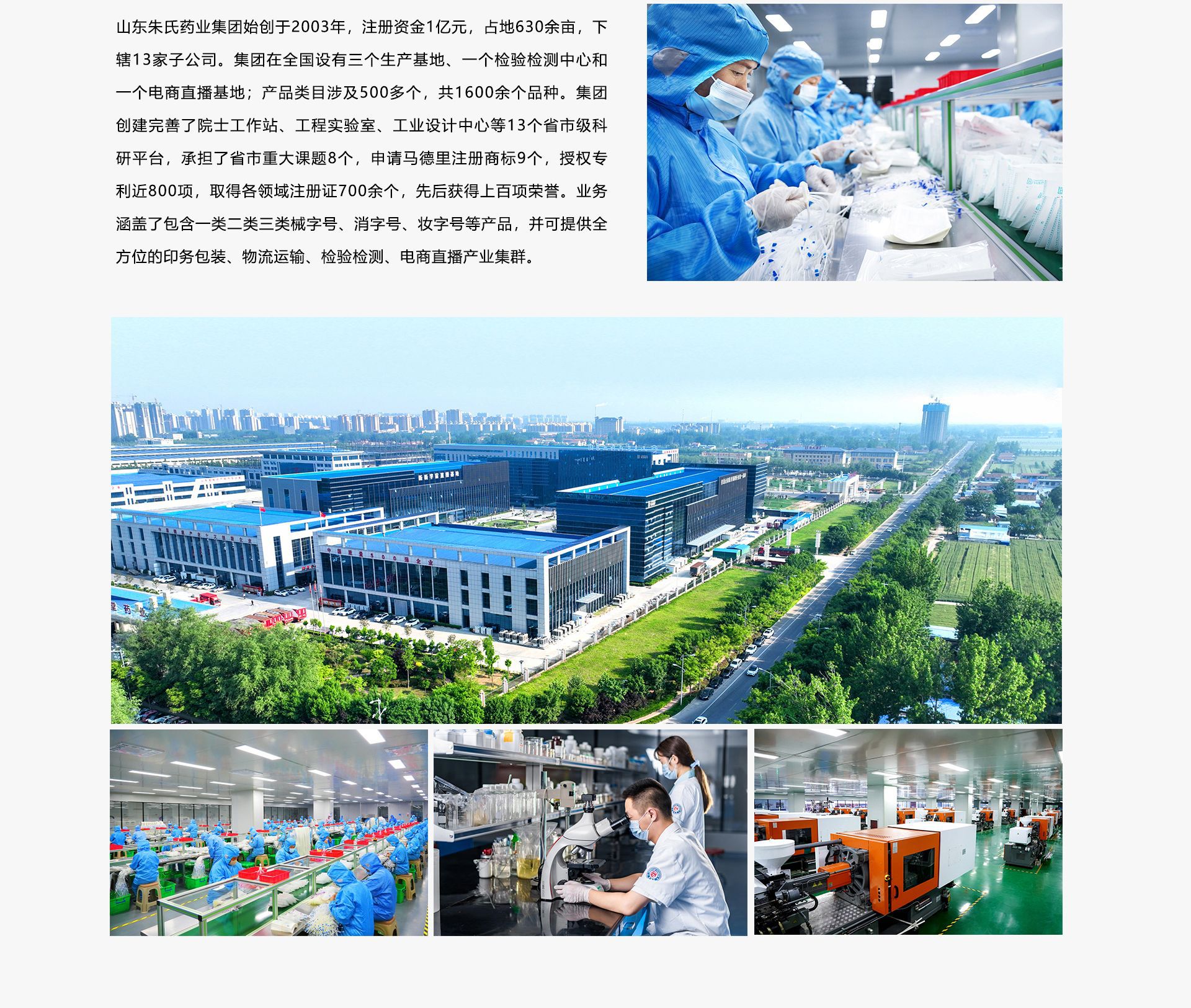 山東朱氏藥業(yè)集團有限公司成立于2003年12月,總部位于山東單縣。是一家集醫(yī)療器械、貼劑乳膏凝膠、保健食品、化妝品等生產(chǎn)與銷售、物流配送、為一體的大型綜合型企業(yè)集團,注冊資金一億元。集團公司共有職工5000多人,其中研發(fā)技術(shù)人員(博士、碩士等)102人。 集團公司先后被評為中國企業(yè)創(chuàng)新品牌、中國健康產(chǎn)業(yè)創(chuàng)新企業(yè)、全國企業(yè)經(jīng)營管理單位、全國消費者信得過AAA級品牌企業(yè)、山東質(zhì)量誠信AAA級品牌企業(yè)、山東省高新技術(shù)企業(yè)、山東省消費者滿意單位、山東省知識產(chǎn)權(quán)示范企業(yè)、山東省重合同守信用單位,山東省科技攻關(guān)項目承擔單位、人民日報理事單位、菏澤市長質(zhì)量獎,集團公司共有發(fā)明專利十六項,實用新型專利七十六項。 集團公司在山東單縣食品藥品產(chǎn)業(yè)園建設集生產(chǎn)加工、電商營銷、物流配送等于一體的大健康產(chǎn)業(yè)園,目前產(chǎn)品共有100多個系列300余個品種。爭取到“2026”年集團達到1000個產(chǎn)品,達成規(guī)模能力100億元的戰(zhàn)略目標。 發(fā)展歷程 2003年,朱坤福先生創(chuàng)辦山東朱氏藥業(yè)集團有限公司。 2004年,秉承品牌理念,自主品牌與OEM雙線協(xié)同發(fā)展。 2006年,朱氏藥業(yè)第一家分公司成立,規(guī)劃產(chǎn)業(yè)鏈布局,為產(chǎn)出高品質(zhì)產(chǎn)品奠定基礎。 2015年,二期工程籌建,引進食品、化妝品等多條生產(chǎn)線。 2018年,籌建三期工程,涉足生命科學領(lǐng)域。 2020年,優(yōu)化創(chuàng)新體系,建立研發(fā)實驗室,加速邁進集團全球戰(zhàn)略布局。 2022年,朱氏藥業(yè)集團四期投產(chǎn),進一步優(yōu)化戰(zhàn)略方針。 2023年,山東朱氏藥業(yè)集團成立20年,全面向自主知識產(chǎn)權(quán)及打造自主品牌方向轉(zhuǎn)換。 所獲成就 2016年,被授予“第四屆菏澤市市長質(zhì)量獎”。 2016年,入選菏澤市人民政府“2016年度重點培育企業(yè)名單”。 2019年,經(jīng)山東省人力資源和社會保障廳同意,設立“山東省博士后創(chuàng)新實踐基地”。 2021年,被山東省發(fā)展與改革委員會授予“山東省服務業(yè)創(chuàng)新中心”。 2021年,榮獲“菏澤市2020年度突出貢獻企業(yè)”。 2022年,入選省“十強”產(chǎn)業(yè)集群領(lǐng)軍企業(yè)庫。 2023年,入選“菏澤市工業(yè)旅游示范基地”。 2023年,獲得“菏澤市科學技術(shù)進步獎”。 2023年,在“科創(chuàng)中國”專利信息創(chuàng)業(yè)應用大賽(山東專場)中獲得二等獎。 企業(yè)文化 企業(yè)使命:為人類健康服務。 企業(yè)價值觀:激情、精進,客戶第一,團隊協(xié)作,結(jié)果導向。 企業(yè)愿景:做999年的朱氏企業(yè),打造全球醫(yī)療器械第一品牌。 企業(yè)總部 地址:山東省菏澤市單縣工業(yè)園區(qū)單德路6號。