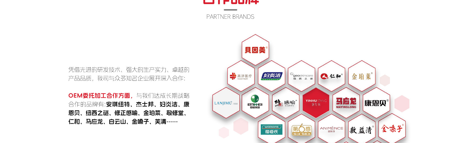 在品牌委托加工合作方面,我司憑借先進的研發(fā)技術(shù)、強大的生產(chǎn)實力、卓越的產(chǎn)品品質(zhì),贏得了眾多企業(yè)的關(guān)注及信賴,與國內(nèi)知名企業(yè)展開產(chǎn)品委托加工合作。